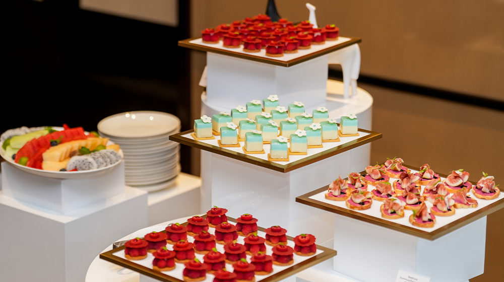 活動期間,酒店行政總廚Benny攜團隊爲此次活動定製主題茶歇。同時,餐飲團隊也呈獻了現場烹飪互動,將食材以特別的圖像擺盤與此次藝術與演說主題互動連接,併爲賓客帶來具有本地特色的樂山豆腐腦,深受賓客喜愛。